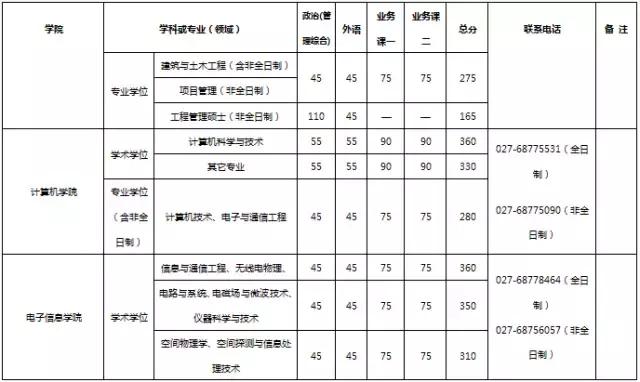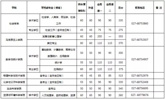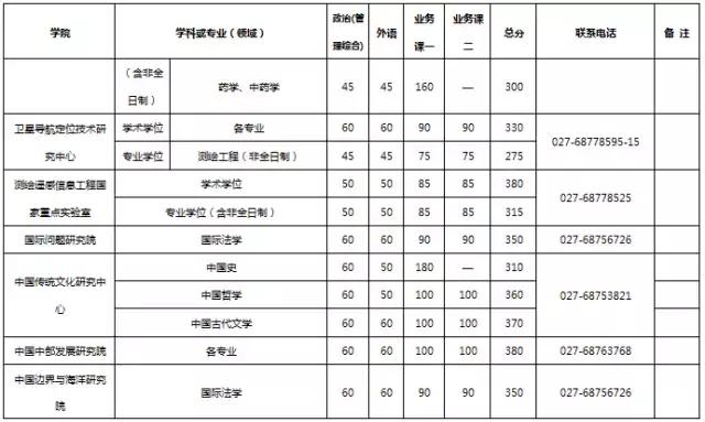 武汉大学2017年考研分数线