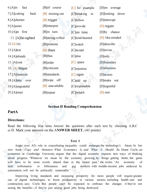 2024考研英语二完型填空真题